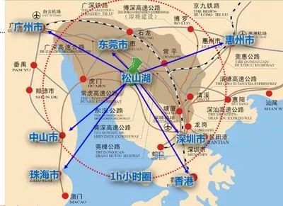 作为“广深港”黄金走廊腹地,松山湖被列为东莞“创新中轴”。以松山湖为核心和节点,沿新城路、生态园大道延伸,集聚国内外各类创新资源,形成南连深圳光明新区、大沙河创新区、前海自贸区,北接广州科学城,横贯珠三角东岸的“创新走廊”。