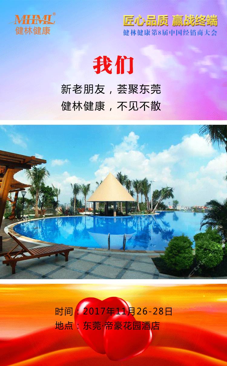 匠心品质·赢战终端——健林健康第8届中国经销商大会将于11月27日在中国·东莞举办。大参林医药、益丰大药房、江中药业、太太药业等上市名企将参与本次大会,届时,千人欢聚一堂,高朋满座、群英荟萃,共襄盛会,深入探讨全民健康战略,以匠心品质健康品赢战终端市场。