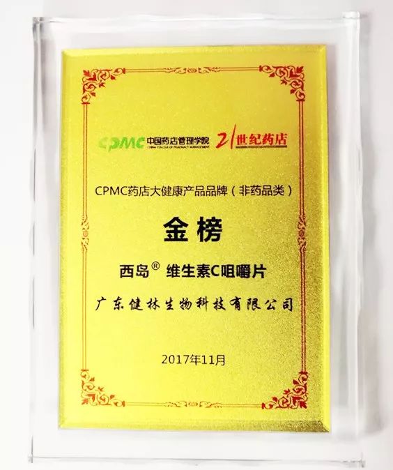 近日,2017“CPMC药店大健康产品品牌(非药品类)金榜”正式公布,健林健康旗下的西岛维生素C咀嚼片在众多品牌中脱颖而出,以高票荣登大健康品牌金榜!