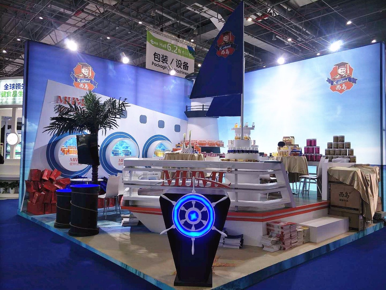 健林健康展台座落在国药会主会场6号馆的醒目位置,近百平米的特装展台,造型设计别具一格,惊艳抢眼,人气爆棚。展台以“西岛-健康西洋派”为主旋律,采用简洁、清新的异域海岛风格,以浅蓝、白色为基色,军舰为造型,并配以个性化的美人鱼、海岛沙滩、椰林等海上元素,完美营造出蓝天白云下海岛的健康气息,充分体现了西岛品牌磅礴大气、自然健康,充满生命力的品牌形象,吸引了数千位健康产业新老朋友观展咨询,慕名前来的朋友更是络绎不绝。